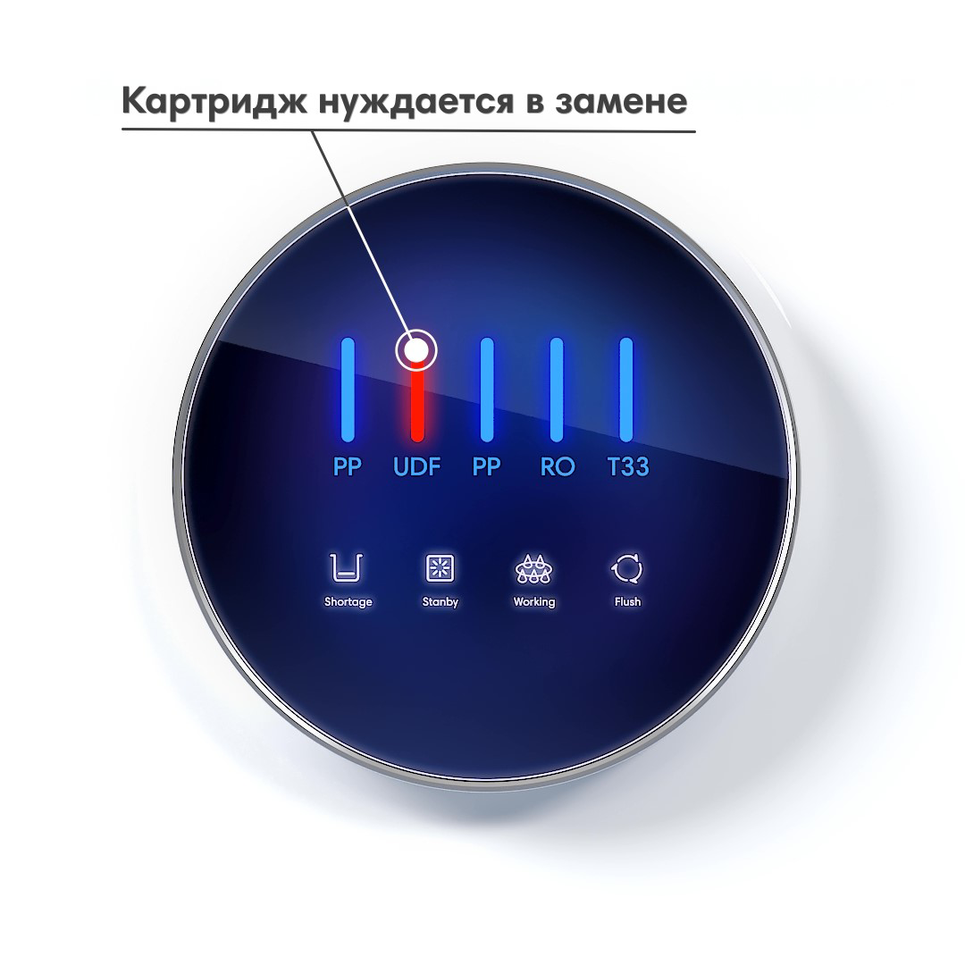 Модель atoll A-5500p STD (Cruise) относится к категории бытовых фильтров обратного осмоса прямоточного типа (без накопительного бака) с насосом. Особенности atoll A-5500p STD (Cruise) высокая производительность позволяет исключить из конструкции накопительный бак современный дизайн корпуса с глянцевыми закругленными панелями корпуса, удобными сенсорными клавишами управления и большим дисплеем позволяет не только привычно прятать фильтр под мойку, но и устанавливать его в открытом пространстве. встроенный интеллектуальный процессор контролирует все режимы работы системы и отображает их с помощью пиктограмм на индикаторе. Режимы фильтрации, автоматической сервисной промывки мембраны, отсутствия воды в водопроводе и даже срабатывание датчика протечек – всё это отслеживается в режиме реального времени! своевременная замена картриджей теперь гарантируется: индикатор показывает оставшийся ресурс каждой из 5 ступеней очистки воды и изменением цвета сигнализирует о необходимости их своевременной замены; автоматизированная система периодической промывки продлевает срок службы мембраны и не позволяет воде застаиваться в картриджах — из питьевого крана поступает только свежая вода. Конструктивные преимущества системы: Несмотря на всю компактность фильтра, в блоке префильтрации используются стандартные (Slim Line 10”) картриджи Pentek производства Pentair (США) – мирового лидера в этой области. Обратноосмотическая мембрана atoll имеет в 10 раз более высокую производительность (500 gpd – тестировалась по методике Dow), по сравнению с самой массовой стандартной мембраной на мировом рынке. Встроенный мощный малошумный насос повышения давления обеспечивает стабильность работы системы в широком диапазоне давлений в водопроводе. Кран питьевой воды atoll F-304SS выполнен из высококачественной нержавеющей стали и не привносит в воду никаких примесей. Сменные картриджи: 1-я ступень — Pentair (Pentek) P5 картридж механической очистки удаляет загрязнения от 5 микрон и выше; 2-я ступень — Pentair (Pentek) GAC-10 картридж с активированным углем удаляет хлор, органические соединения, пестициды, улучшает органолептические свойства воды; 3-я ступень — Pentair (Pentek) P1 картридж механической очистки удаляет загрязнения от 1 микрон и выше; 4-я ступень — мембрана atoll TW30-3012-500HR — устраняет все мельчайшие частицы размером от 0,0001 микрон; 5-я ступень — Картридж Pentair (Pentek) EPM-10 — финишная очистка. Наборы картриджей: Набор префильтров – atoll №202 STD (1 раз в 6 месяцев или по индикатору фильтра) Полный набор – atoll № 110 STD (1 раз в 2-3 года или по индикатору фильтра) Регистрация atoll Cruise Мы будем помнить о Вас и в нужный момент сообщим о необходимости замены картриджей или проведения сервисного обслуживания. Зарегистрировать